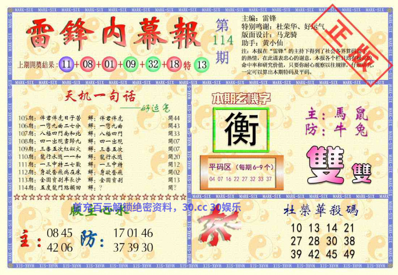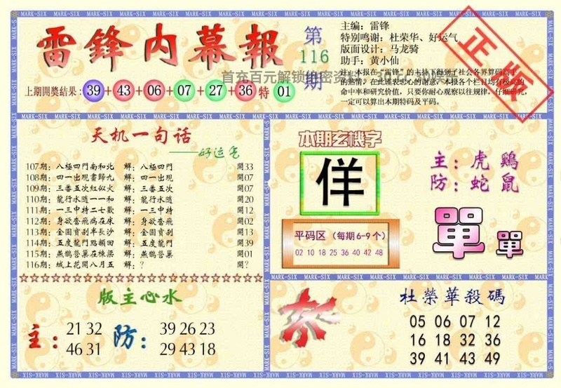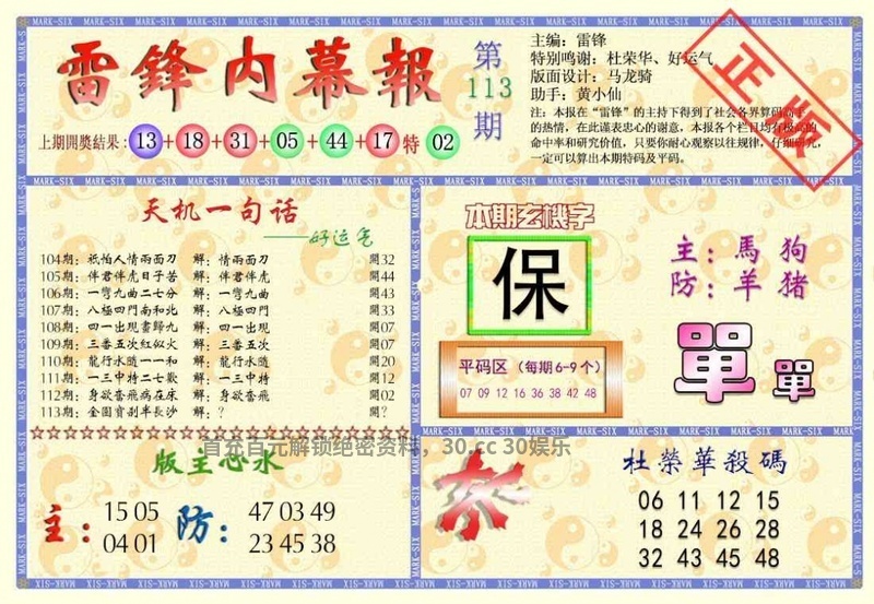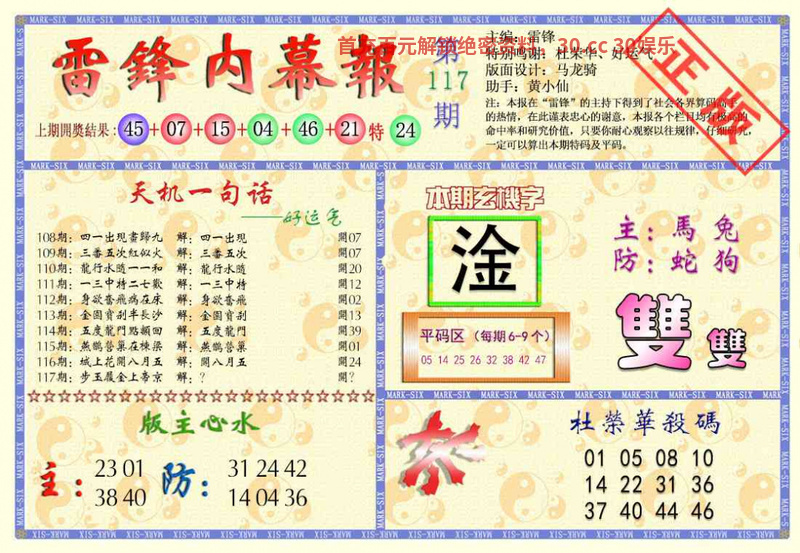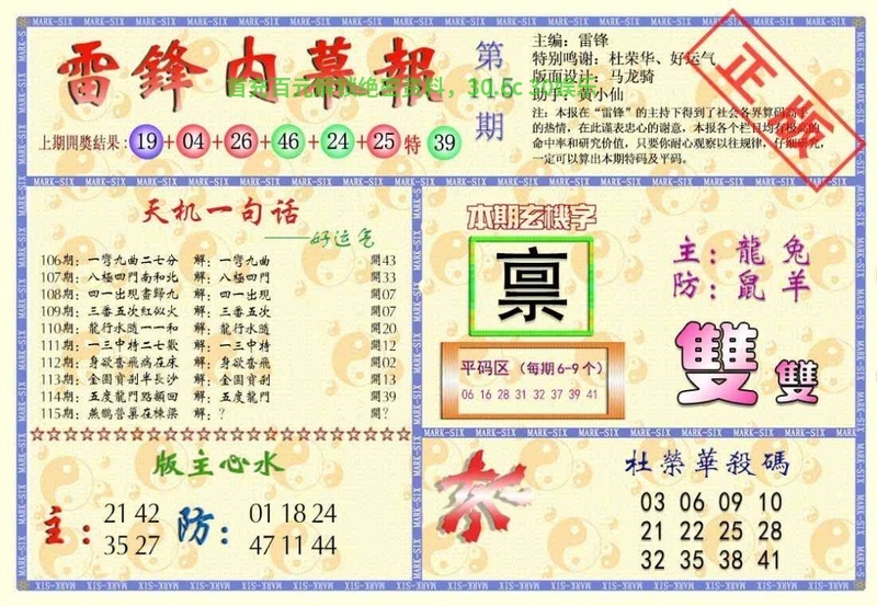 118期:【雷锋论坛★⒓码出特★稳定猛料】